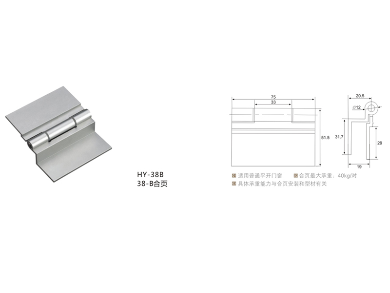 您的位置:首页 > 产品中心 > 铝合金合页 > HY-38B