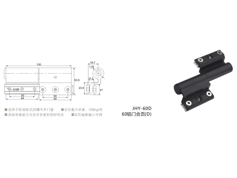 您的位置:首页 > 产品中心 > 铝合金合页 > JHY-60D